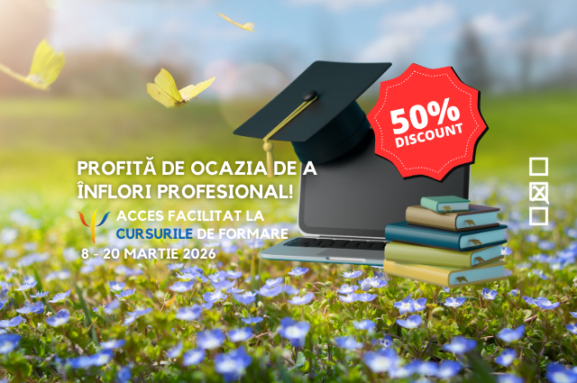 Promoția cu 50% este valabilă de pe 8 până pe 20 Martie 2026 (inclusiv), necumulabil cu alte reduceri, pentru cursurile de mai jos. Pentru a comanda apasă fiecare link în parte și apoi butonul ”Achiziționează”.