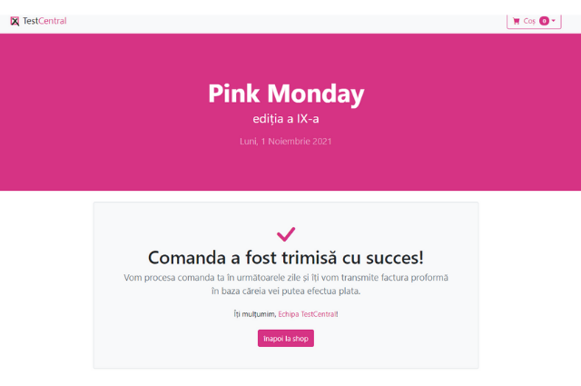 Această acțiune va conduce către afișarea unui mesaj de confirmare pe ecran, cât și la trimiterea unei copii a comenzii clientului pe emailul furnizat. Te rugăm să verifici folderele SPAM sau JUNK în cazul în care nu găsești în Inbox copia comenzii tale.